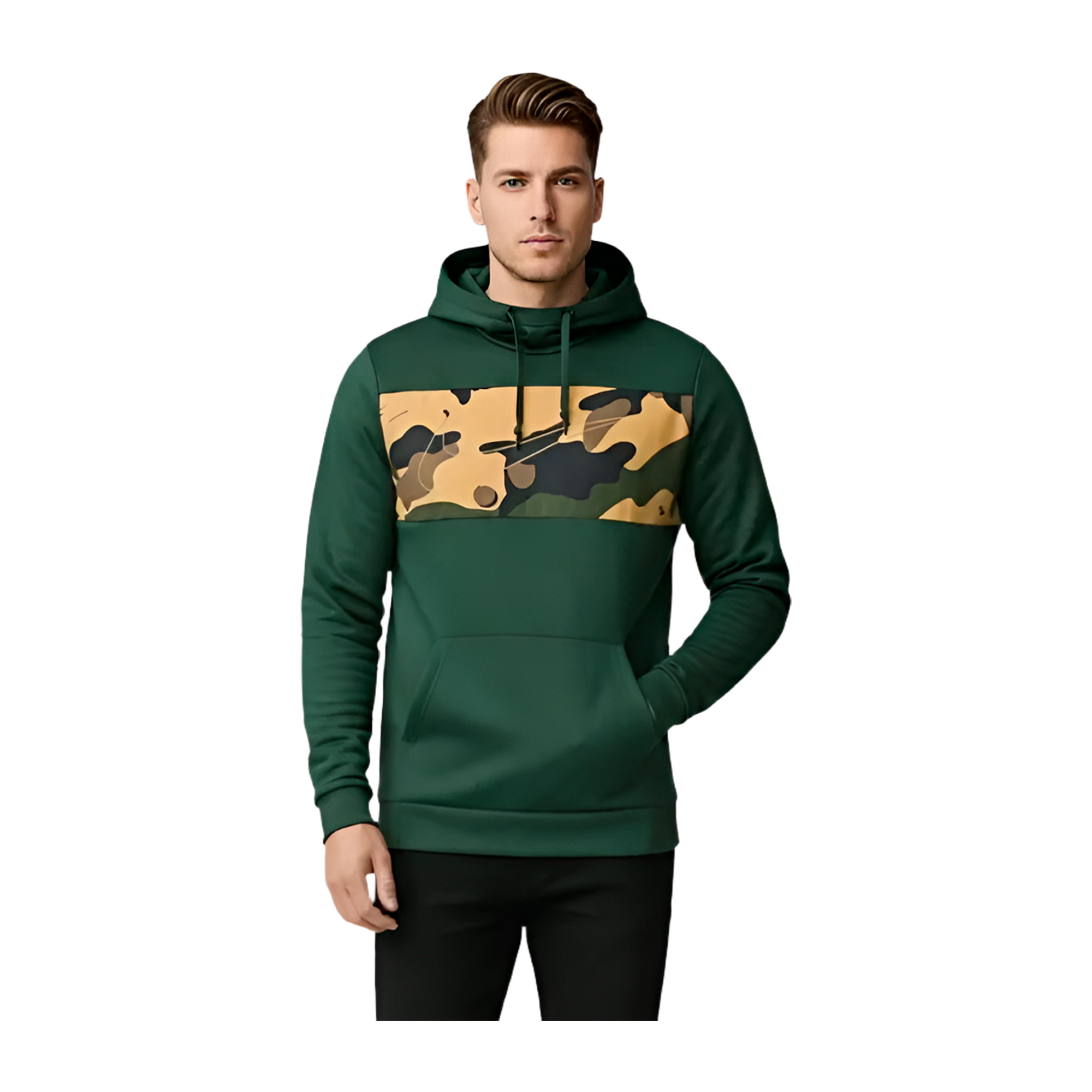 - Цвет: Зеленый, Камуфляжный принт на груди